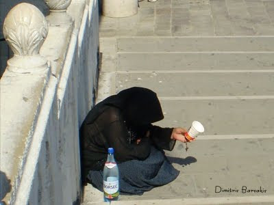 Ζητιανεύοντας έξω από το πολύχρυσο Παλάτι των Δόγηδων, μ' ένα ξύλινο σταυρουδάκι κι ένα κυπελλάκι McDonald στο χέρι...