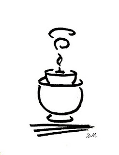 Ξαναγυρίσαμε με τον Μπαρμπαμήτσο στο δωματιάκι και βρέξαμε το ξερό ψωμί για τις γάτες. Μας περίμεναν οι ξεφτισμένες καρέκλες και τ' άδεια ποτηράκια μας στη θέση τους.
