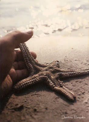 Κάτω στο γιαλό, έψαχνα να βρω τι είχα ξεχάσει. Ήταν τόσο απλό και φυσικό, θα είχα ίσως ξεχάσει να ξαπλώσω, να μισοκοιμηθώ με τ' αφτί στην άμμο, ν' ακούω το σφυγμό της άμμου, κάπου ανάμεσα στη μέρα και τη νύχτα. Είχα ίσως ξεχάσει το νιο φεγγάρι κι ανασηκώθηκα στους αγκώνες να του ανταποδώσω το νεύμα της συμπάθειας. Θα είχα ξεχάσει κι ένα νεκρό αστερία, που τον είχα συντροφιά και περιμέναμε μαζί τη νύχτα να 'ρθει. Ήταν κι ένα αυλάκι στην άμμο παραπέρα, από το σούρσιμο μιας βάρκας κάποιου άφαντου ψαρά. Και περιμέναμε, εγώ κι ο νεκρός αστερίας, περιμέναμε εκεί τη νύχτα να 'ρθει, δεν ξέρω μέχρι πότε. Αλλά η νύχτα μας είχε ήδη προσπεράσει, είχε κυλήσει ίσα κατά τη θάλασσα, μέσα από κείνο τ' αυλάκι που είχε χαράξει στην άμμο η βάρκα. Το νιο φεγγάρι βασίλεψε γρήγορα. Κουράστηκε πια να περιμένει ο νεκρός αστερίας κι ήρθε μέσ' στη χούφτα μου να ξεψυχήσει. Πρόλαβε και μου ψιθύρισε μόνο: Φράξε εκείνο τ' αυλάκι, θα κουραστείς κι εσύ... Μα εγώ περίμενα ακόμα. Πέρασε η νύχτα και προσπέρασε πάλι ως τότε. Μονάχα μια στερνή φορά πλησίασε και πύκνωσε και στάθηκε ολόκληρη η νύχτα ακριβώς πάνω απ' το νεκρό αστερία, μια μαύρη ταφόπλακα στο μνήμα του, που δεν το διέκρινα πια, μόνο ήξερα πως ήταν τόσο κοντά μου, τόσο όσο εγώ δεν ήμουν ίσως.